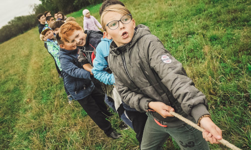 Tug of war is a game that pits two teams against each other in a test of strength. Teams pull on opposite ends of a rope, with a goal of bringing the rope to a certain distance past a center line.