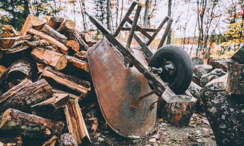 Two person wheel barrow is a game where teams compete against each other to race to the finish line. One team member holds the others feet up while the other uses their hands to race forward.